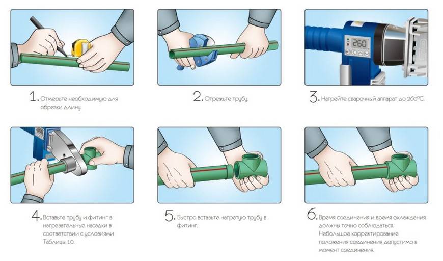 Затем в насадку аппарата одновременно вставляются оба отрезка труб, которые подлежат соединению. После их нагревания аппарат для сварки убирается и производится соединение. В процессе выполнения этой операции необходимо некоторое время удерживать их неподвижно до остывания шва. И только после этого труба становится пригодной к эксплуатации.