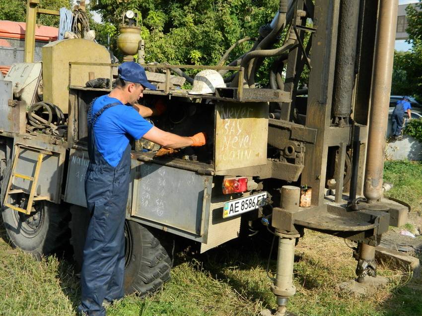 Устройство глубинной скважины либо как их еще именуют – артезианской, есть значительно более трудоемкой работы, которая требует наличия особого оборудования и квалификации бурильщиков. Соответственно, пробурить самостоятельно такую скважину просто физически нереально.
