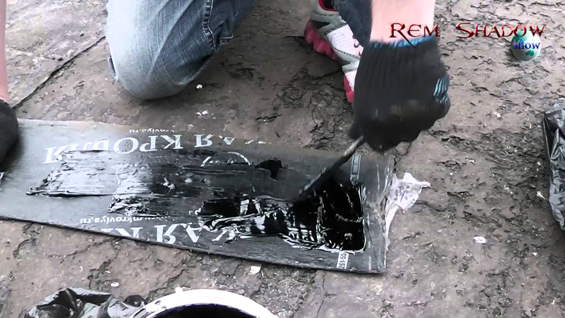 Выполнив нанесение битума, стоит понимать, что достижение им твердого состояния происходит на протяжении нескольких минут. Ввиду этого рекомендуется использовать небольшими порциями и все делать быстро.