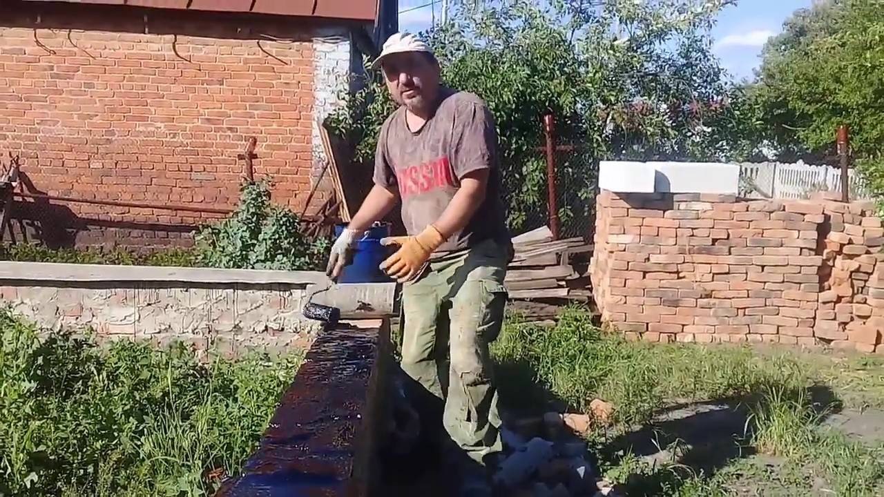 Таким образом, на брикет битума весом в 25 кг уходит ровно 5 литров отработки. Полученную смесь на фундамент мазать нужно кистью для битума (есть такая), но желательно к ней взять металлическую ручку и прикрутить на шурупы.