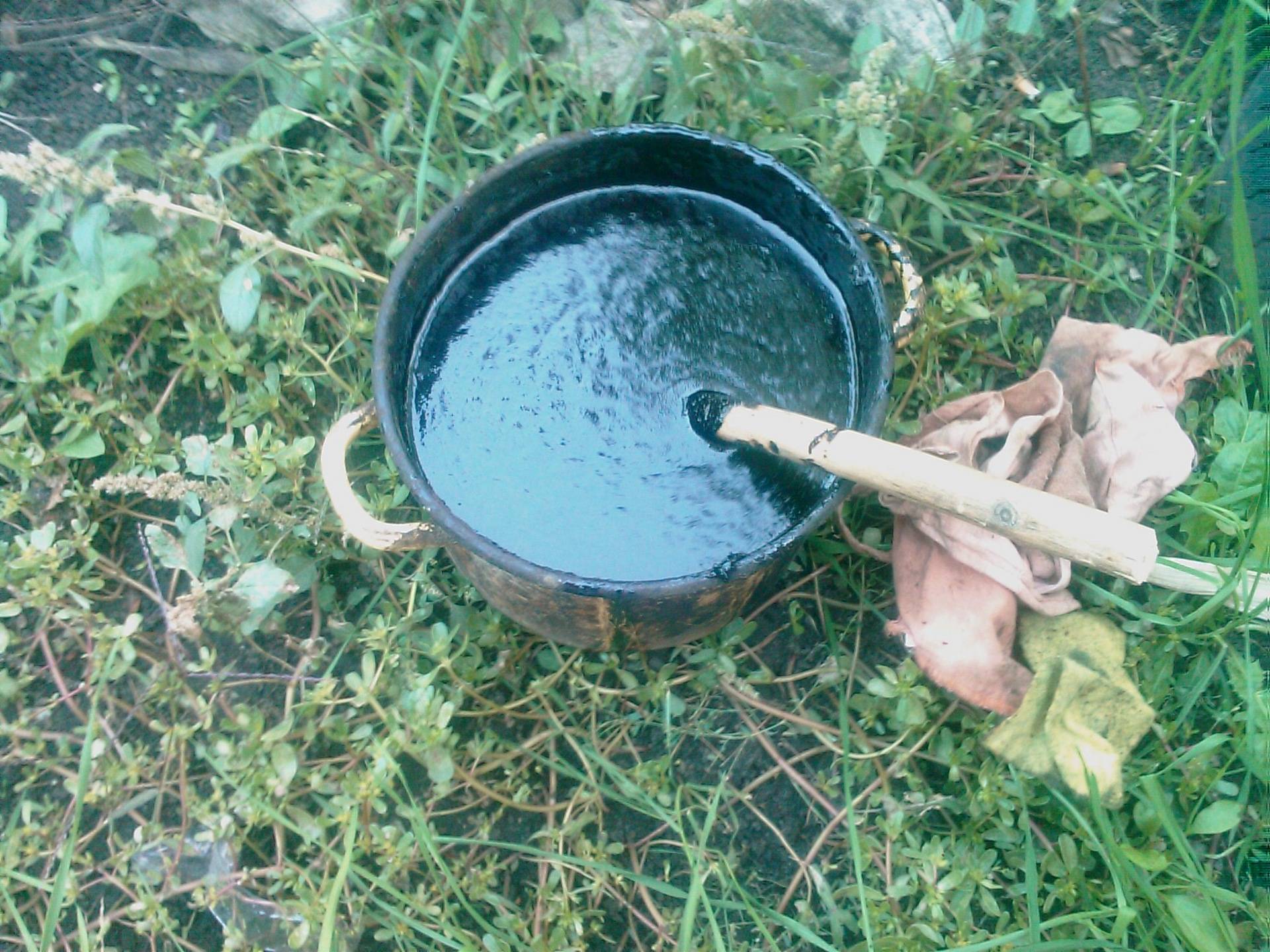 Вот самый простой способ в домашних условиях. Нужно приобрести битум – кусковой, тот, который идет по 25 кг, или в бумажном ведре по 20 кг. Его следует расколоть обычной кувалдой на куски поменьше и растопить их на костре до жидкого состояния.