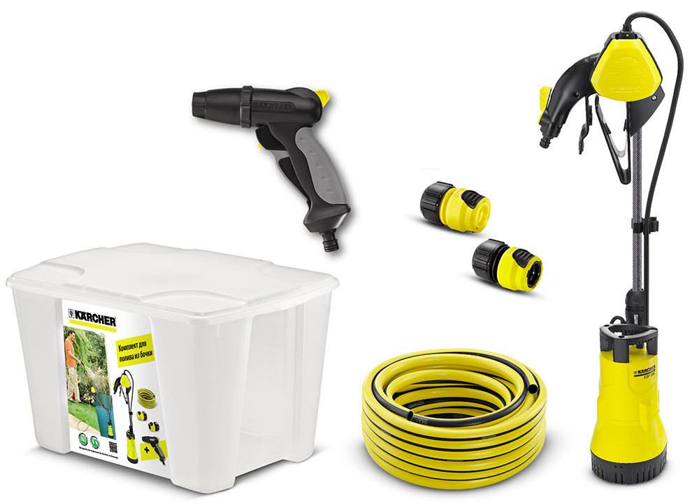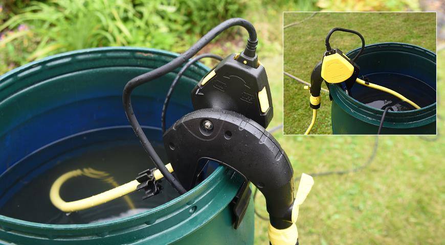 Насос «Керхер» для полива из бочки применяют чаще других аппаратов. Немецкий производитель предусмотрел все особенности полива нагретой водой из емкости. Поплавковый насос с нижним забором воды больше подходит для систем полива. Конструкция бочкового погружного насоса для колодца имеет фильтр на заборном отверстии. В комплект входит шланг сечением в полдюйма, длиной 20 м. Устройство снабжено вентилем, позволяющим регулировать напор и пистолетом для распыления. Насос переносится ручкой, хранится в контейнере. Мощность аппарата 400 вт., производительность 3,8 м 3 /час при напоре 11 м.