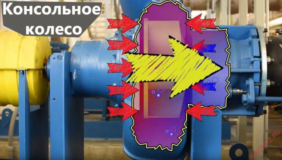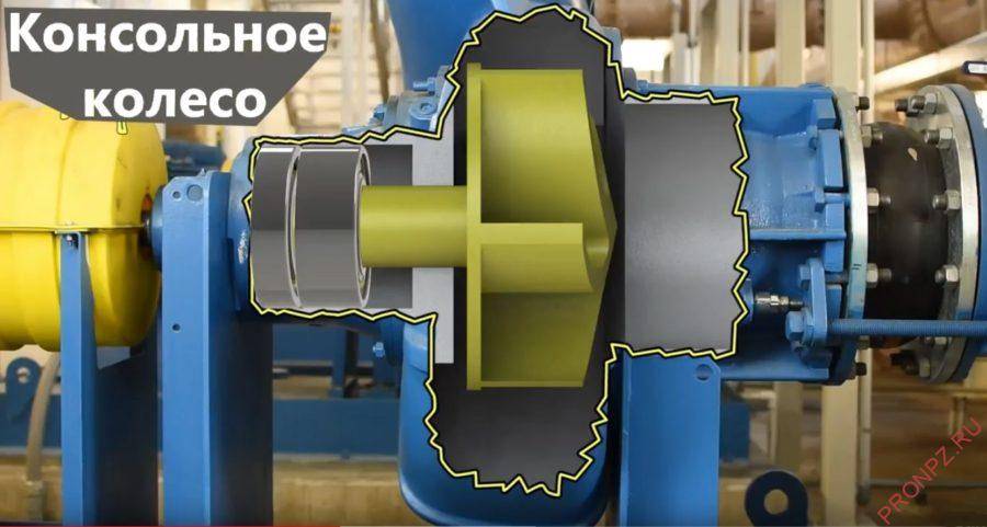 При консольном укреплении вала, рабочее колесо закреплено на одном конце, а подшипники на другом.