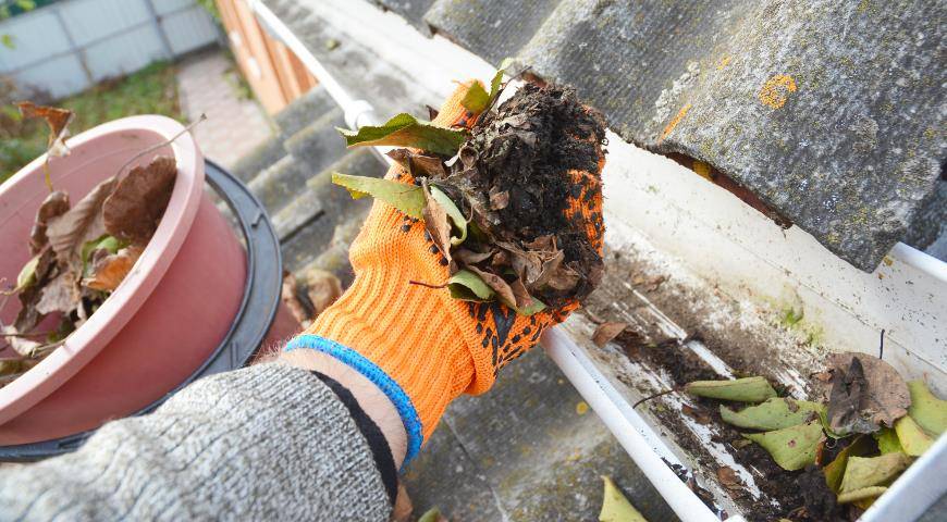 - Не стоит забывать о необходимости периодического очищения системы. Желоба открытого типа легко засоряются опавшей листвой, а в трубы попадает мелкий мусор и грязь. Попавший в водосток мусор придется убирать вручную. В чистке поможет хороший напор воды, например из шланга. Есть специалисты, которые выполнят эту работу за денежное вознаграждение.