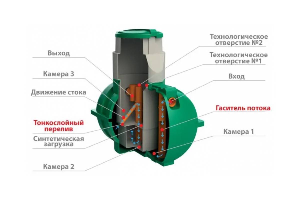 - способность септика выдерживать значительные перегрузки при сбросах критического количества воды.