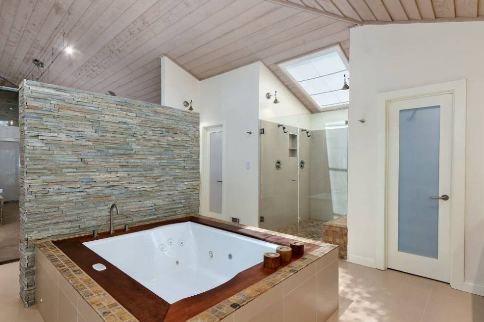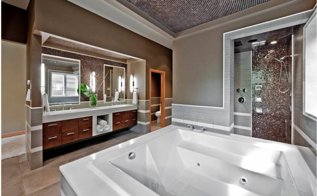 В ванных комнатах большой площади станет габаритная угловая джакузи нестандартной конфигурации.