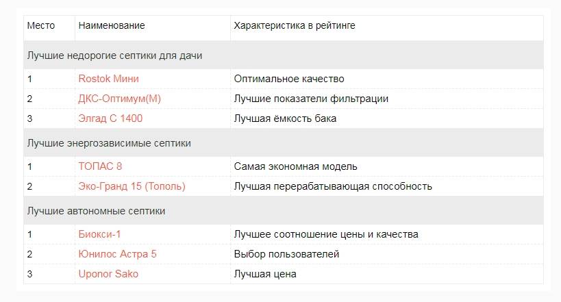 Приведенный рейтинг лучших, по мнению потребителей, септиков можно значительно расширить за счет линейки оборудования зарубежных производителей из Германии, Финляндии и других стран