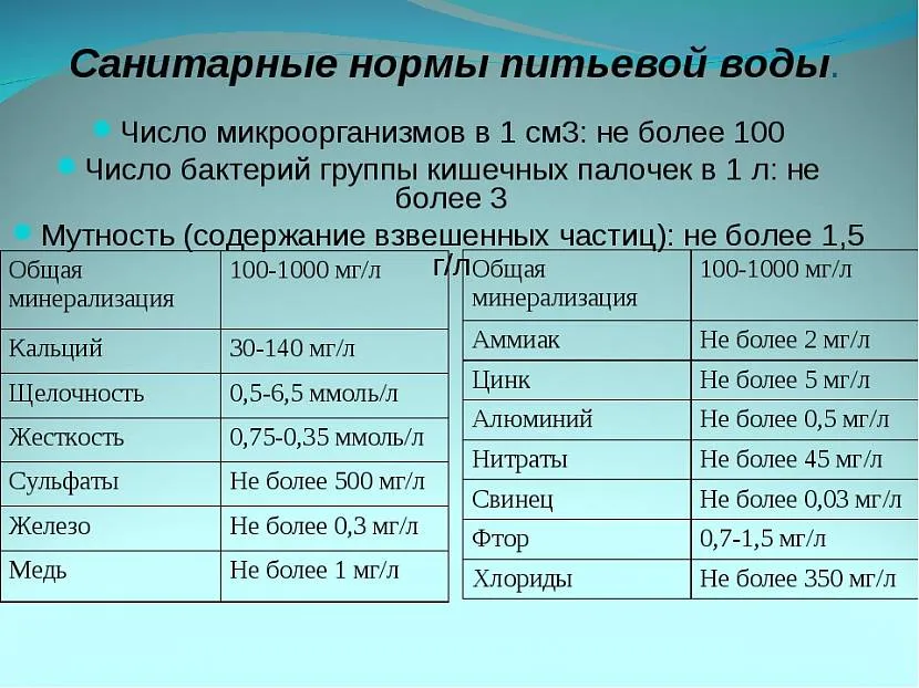 Санитарные нормативы питьевой водыИсточник ds03.infourok.ru