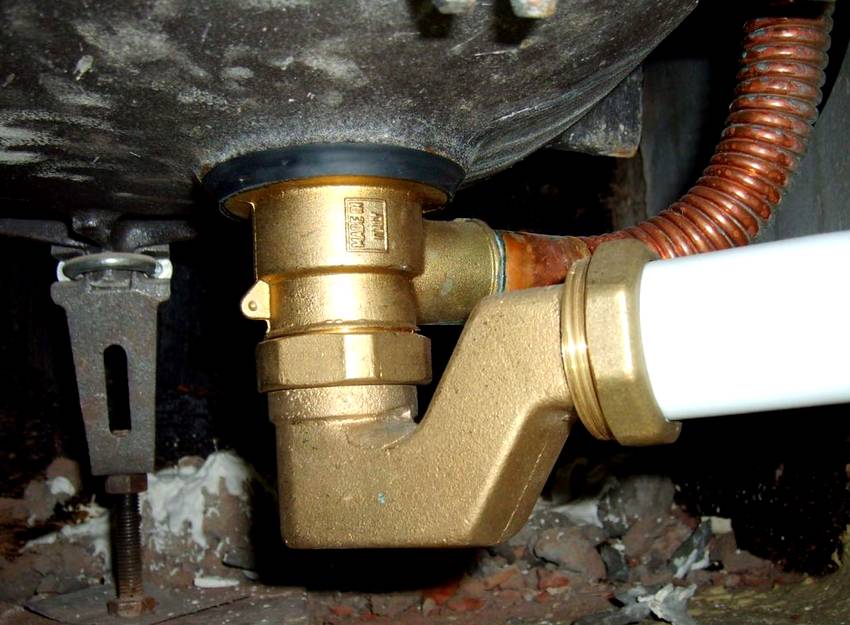 Та часть сифона, где находится вода, всегда расположена ниже сливного отверстия. Поэтому жидкость задерживается в устройстве, когда не осуществляется водоразбор. Часть сифона с водой имеет изогнутую форму. Такая конструкция препятствует полному удалению жидкости из устройства.