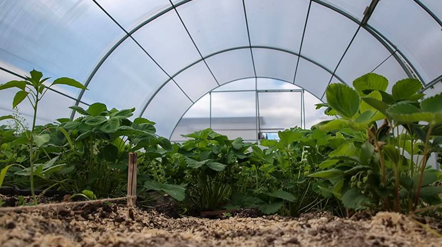 Наиболее популярны среди фермеров теплицы туннельного типа. Ширина такой постройки может колебаться от 3,5 до 12 м. Раньше для покрытия теплиц в основном использовали стекло, оно отлично пропускает свет. Но в то же время стекло довольно хрупкий и тяжелый материал, требующий дорогостоящих и мощных металлических конструкций. В целях удешевления и облегчения конструкции теплицы накрывают полиэтиленовой пленкой повышенной плотности толщиной 150–200 мкр с защитой от ультрафиолета и рассеиванием света, а также с антиконденсатным покрытием с внутренней стороны. Можно использовать сотовый поликарбонат с защитой от ультрафиолета.