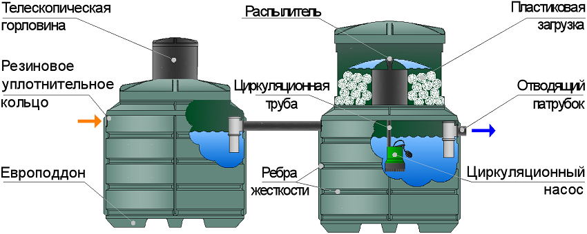 Недостаток — слабая очистка воды (60 — 70 %) из-за чего требуется установка дополнительных фильтров или сооружение полей фильтрации.