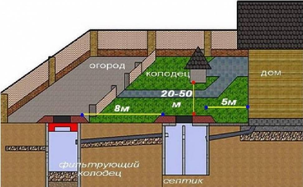 - открытые септики, свалки и иные источники загрязнения почвы должны находиться на расстоянии не ближе 20 м, а оптимально 50 метров от потенциального источника;