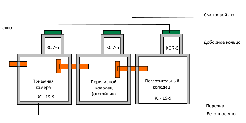 - в приемной камере сбросы отстаиваются. Тяжелые частицы оседают на дно;