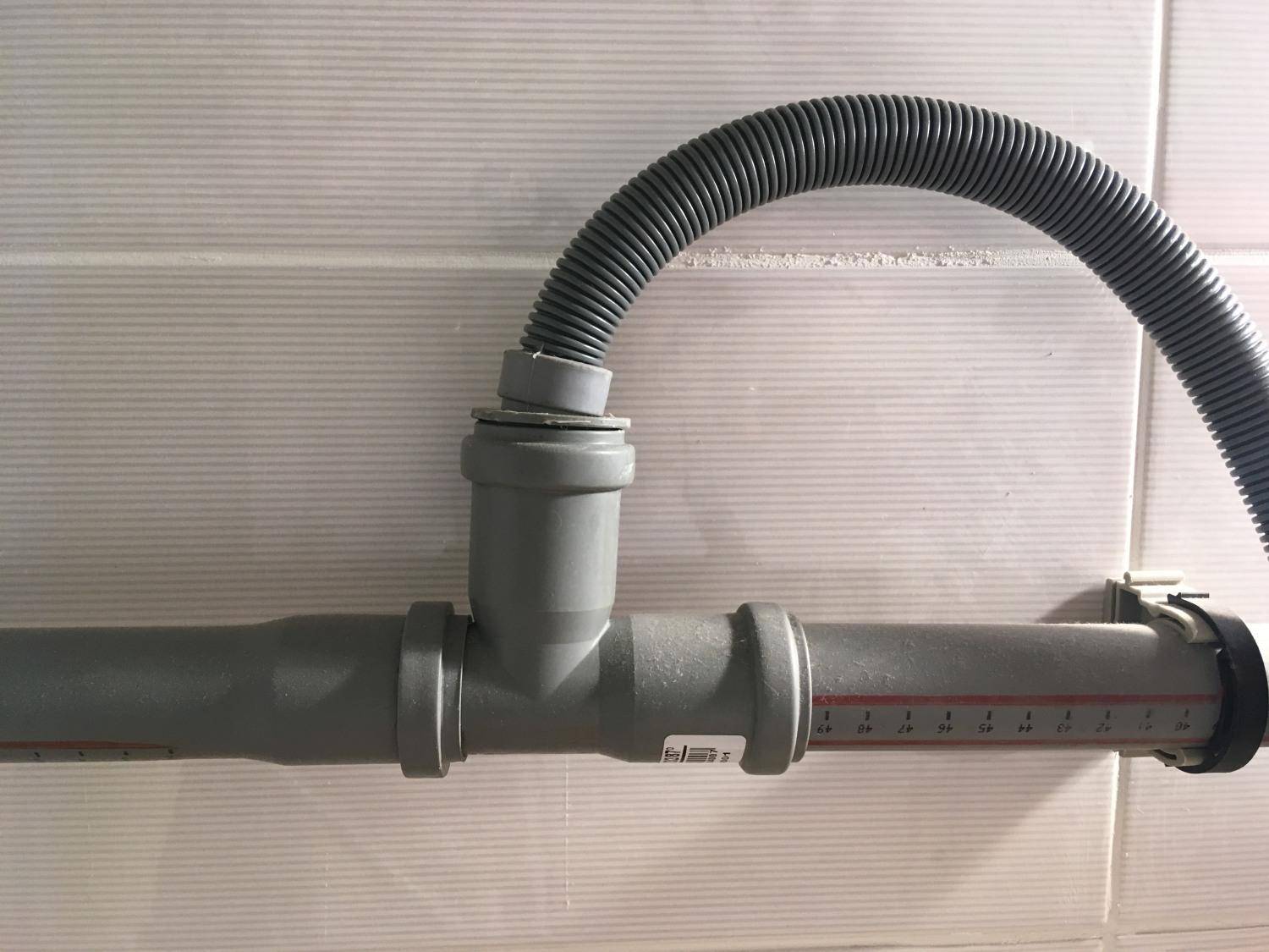 Конец шланга, расположенный на уровне 60 см от пола или выше, должен быть выведен в канализационный отвод, и зафиксирован манжетой или резинкой размером 3,2×4 см внахлёст с трубой. При подсоединении в отвод шланг не должен оказаться в воде.