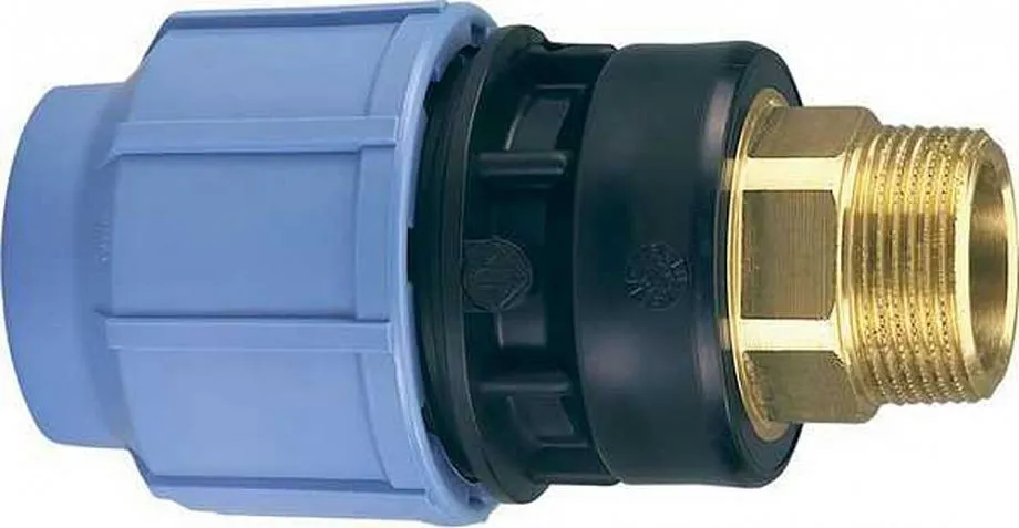 Переход с полипропилена на полиэтиленовую трубу осуществляется при помощи редукционных фитингов. Со стороны ППР нужно приварить фитинг с резьбой, который будет накручиваться на переходник, показанный на фотографии вверху, где с другой стороны будет подсоединен трубопровод ПНД. Но не спешите опускать аэратор в септик до тех пор, пока он не подключен к компрессору. Со стороны нагнетателя нужно запустить двигатель, открыть кран подачи, о котором мы говорили вначале и только после этого погружать аэратор в жидкость – так вы избежите попадания воды в перфорированную конструкцию из полипропилена. Когда она будет погружена полностью, кран на подаче можно перекрыть и заглушить компрессор – жидкость уже не сможет проникнуть внутрь трубы ППР.