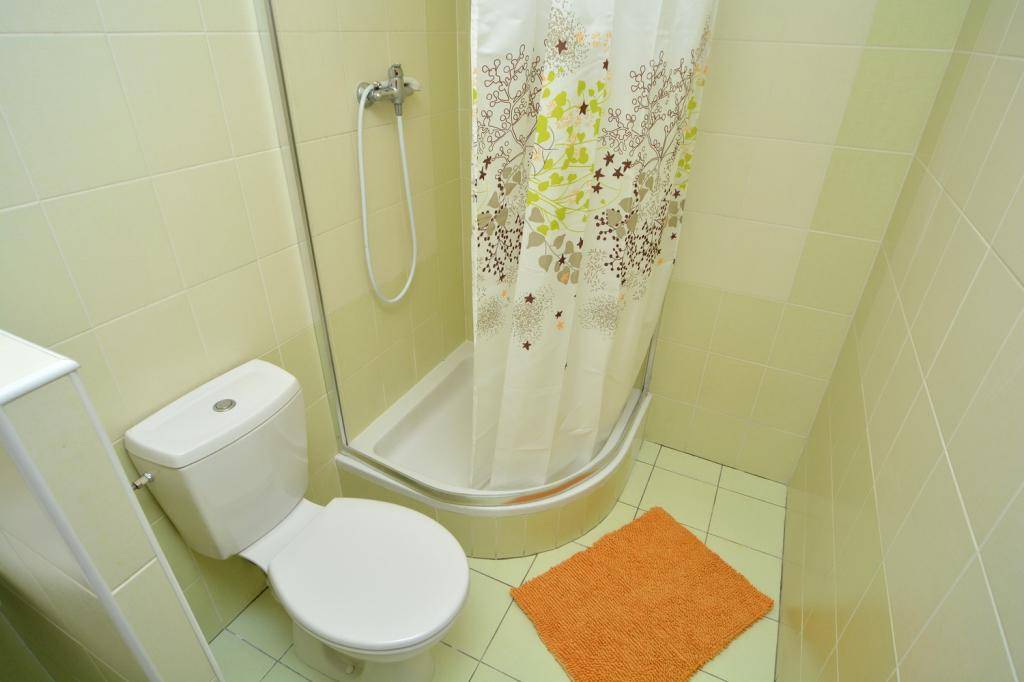 В такой чаше отходы попадают на выступающую полочку, откуда удаляются водой из бачка. Из-за особенностей такой конструкции и сильному напору воды образуется водоворот, что приводит к разбрызгиванию. К тому же еще и требуется дополнительная очистка унитаза.