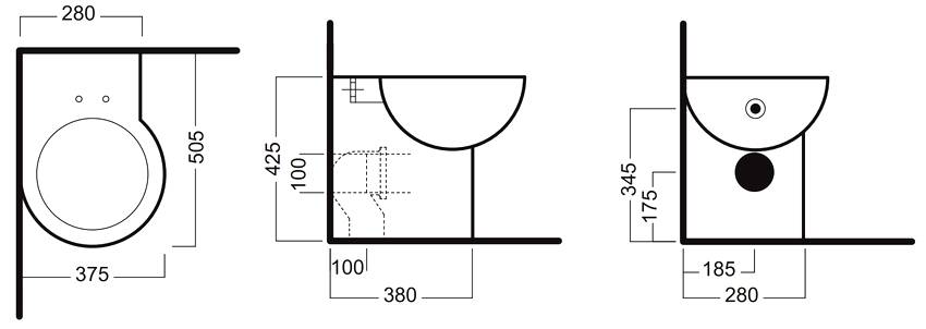 В некоторых санузлах, особенно тех, чья площадь ограничена, зачастую предпочитают устанавливать угловые модели, параметры которых выбирают исходя из ширины углового пространства, где планируется установка. Наиболее распространёнными размерами напольных унитазов, рассчитанных для монтажа в угол, считаются: