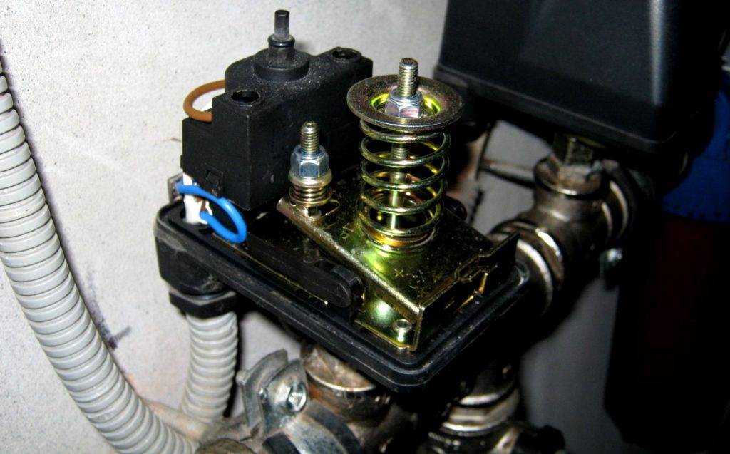 При достижении давлением минимума пластина ослабевает, контакты оказываются замкнутыми и электропривод насосного оборудования начинает работу. Если давление доходит до высшего порогового показателя, разъединяется контакт под пружиной и двигатель выключается. Упругость пружин меняется посредством регулирующих гаек. Чтобы установить срабатывание реле при более высоком значении давления, их затягивают. Ослабление приводит к уменьшению параметра.