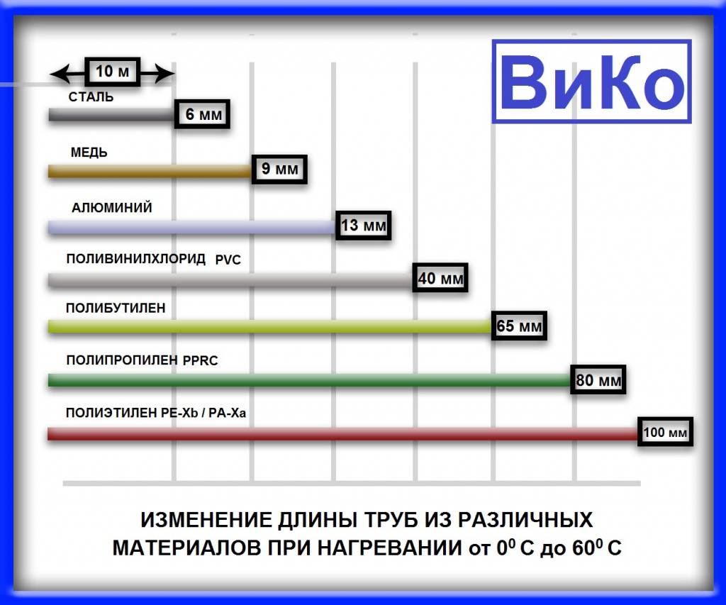 1.простые трубы имеют коэффициент в 0.1500 мм / мК, по-другому десять миллиметров на метр погонный, при изменении температуры на семьдесят градусов.