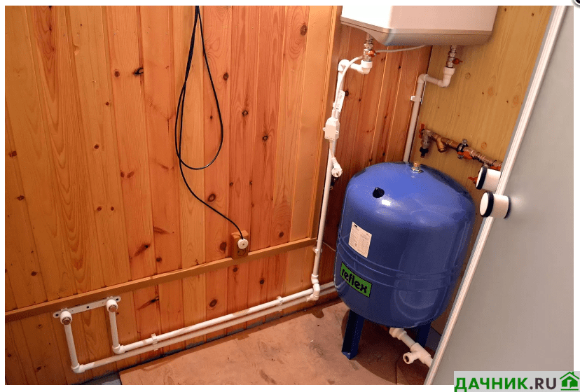 В готовых баках, которые продают в специализированных магазинах, уже предусмотрены отверстия для подключения водопровода и лейки. Поэтому нужно просто присоединить шлангом бак с водопроводом, установить кран с лейкой.