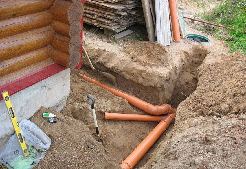 Для этого магистральные трубы размещают в одни и те же траншеи, соблюдая глубину залегания – дрены располагаются под канализационными трубами.