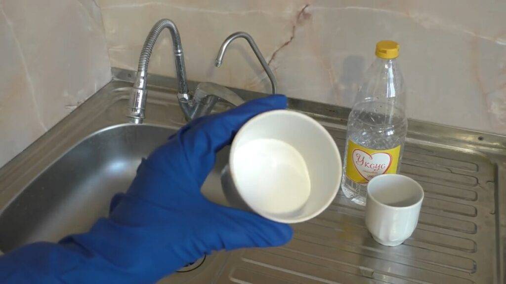 - Далее действуем как с содой: оставляем на пару минут, промываем потоком горячей воды.