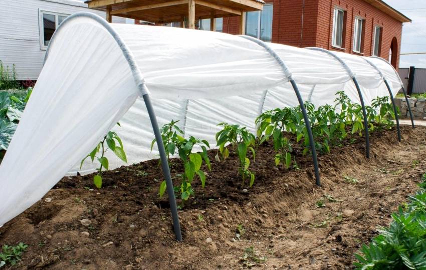 Пример аккуратной постройки парника из дуг арочного типа с использованием специального укрывного материала — агроспана