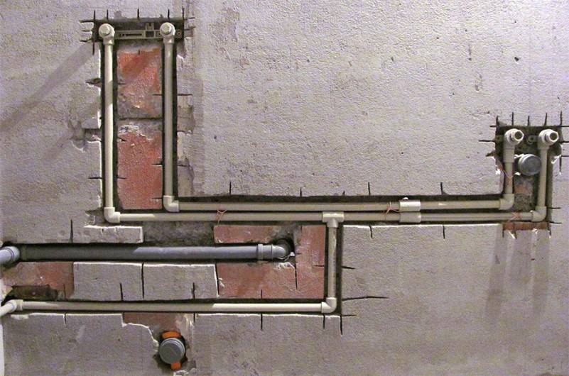 - Идеальный домашний водопровод выполняется так, чтобы исключить прохождение труб через стены помещений. Но, так как обводка приводит к существенному удорожанию системы, трубопровод прокладывается внутри стен, но с использованием защитного металлического стакана, который предохраняет их от деформации, вызванной усадкой здания.