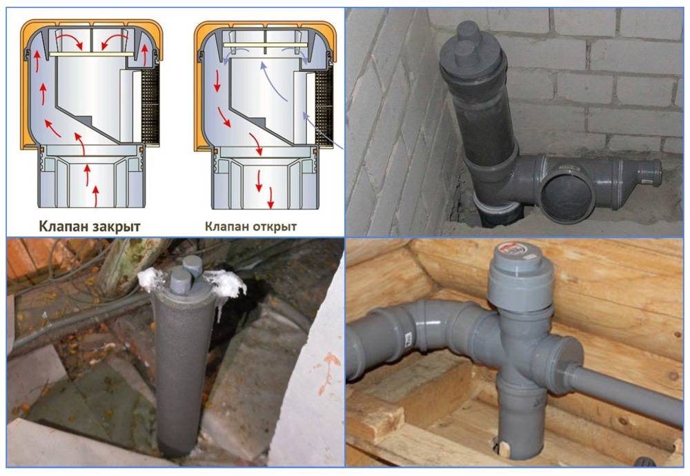 Рис. 4 Вакуумный клапан – принцип работы и размещение на стояке