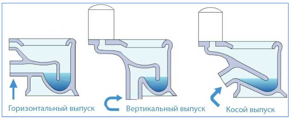 Разновидности унитазов по расположению раструба