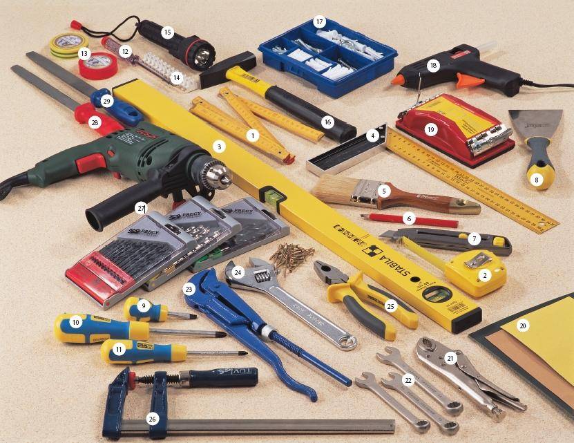 - Перфоратор или ударную электродрель, шуруповерт, гаечные и разводные ключи;