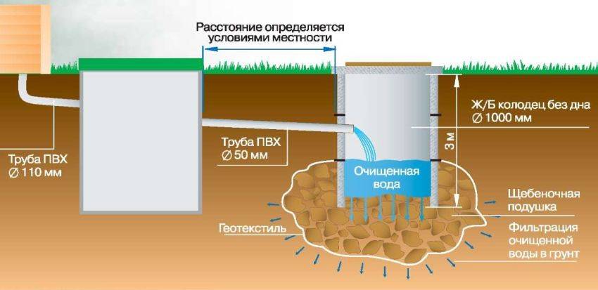 Схема септика с фильтрующим колодцем из бетонных колец