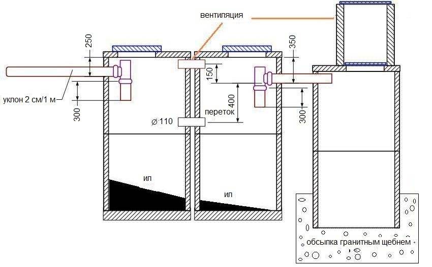Схема септика из бетонных колец