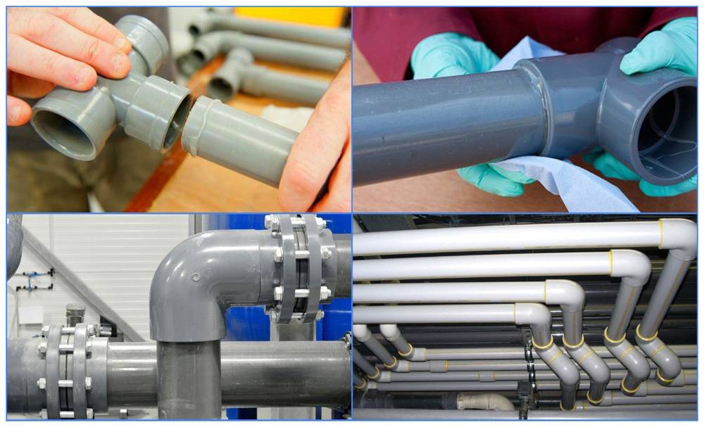 Трубы и фитинги ПВХ для водоснабжения монтируются на клеевых раструбных соединениях.