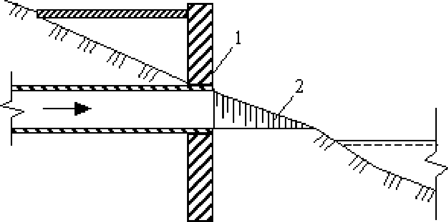 Рисунок 24 – Незатопленный береговой выпуск: 1 – бетонная стенка; 2 – лоток