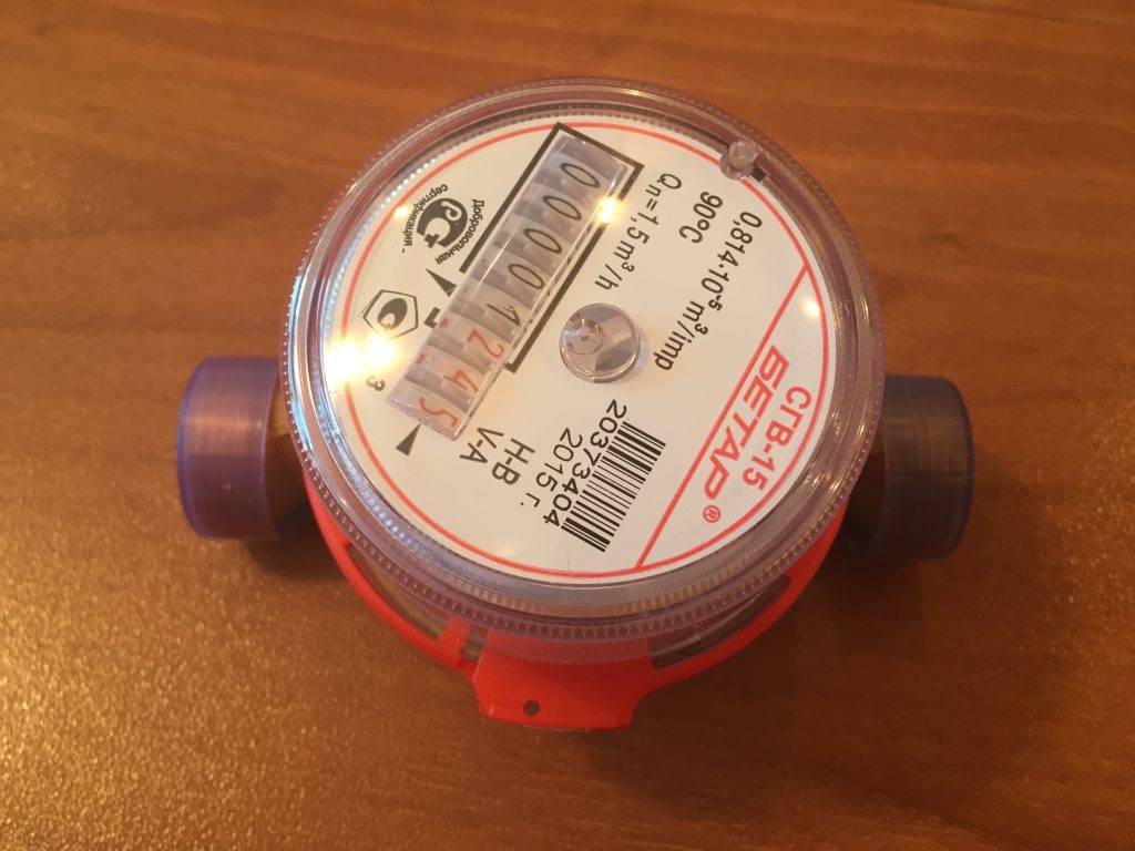Устройство подсчёта потребления горячей воды Бетар СГВ 15 является прибором, в котором осуществляется регистрация даже небольшого движения нагретой жидкости по трубам. Такой водосчётчик стоит недорого, поэтому при небольшом потреблении установка водомера позволит окупить его стоимость в течение 2 – 3 месяцев, в сравнении с фиксированной ежемесячной оплатой.