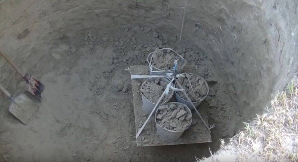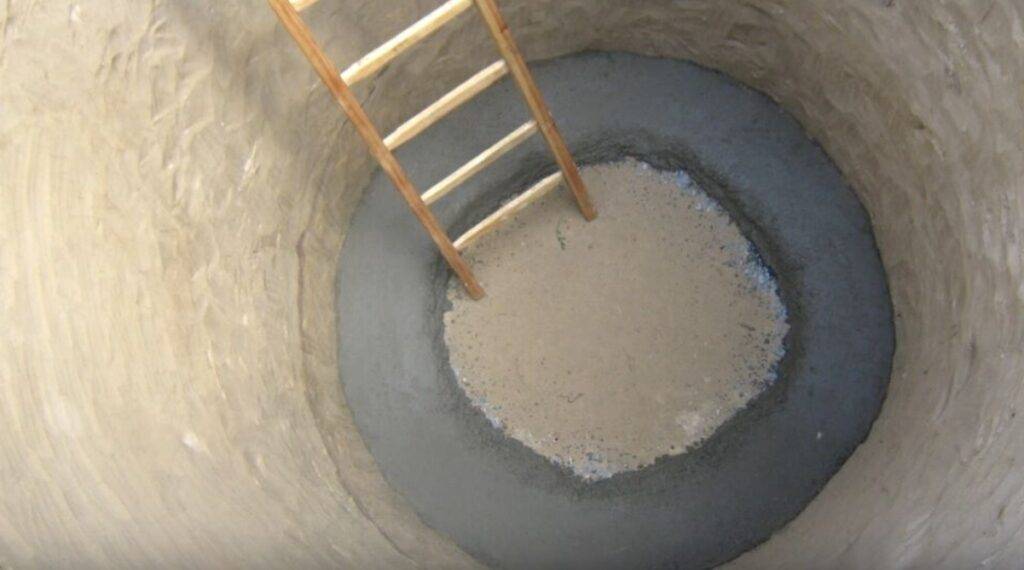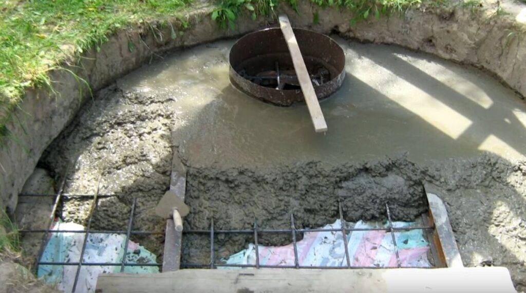 Когда смесь будет готова, к ней нужно добавить небольшое количество воды, тщательно перемешать. Заливается раствор одним разом или в несколько этапов. Второй вариант актуален для тех ситуаций, когда глубина септика большая, а опалубки до самого верха не хватает.