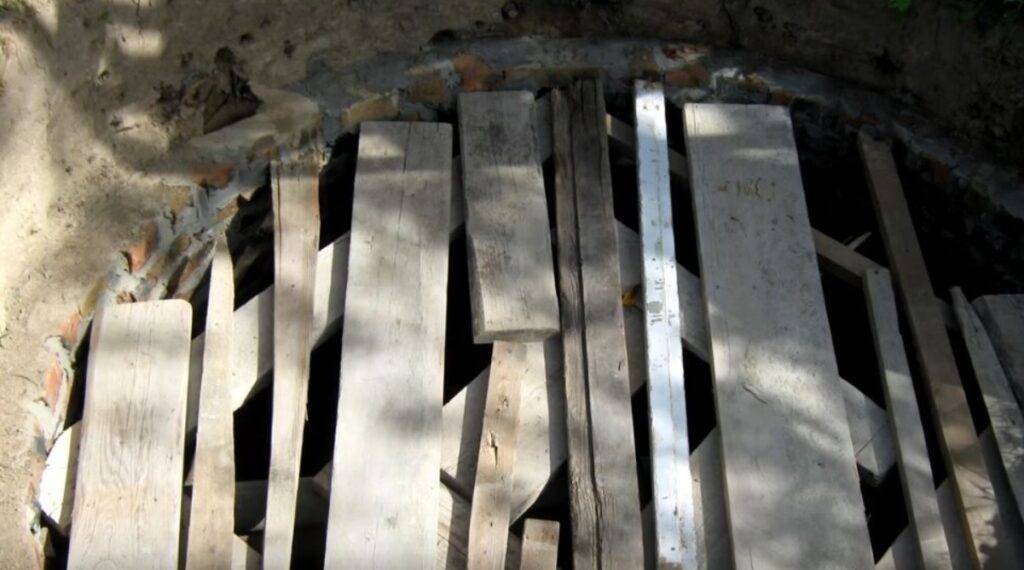 — Сверху укладывается лист железа или толстая доска, закрывающиеся грунтом.