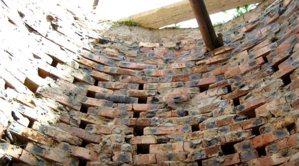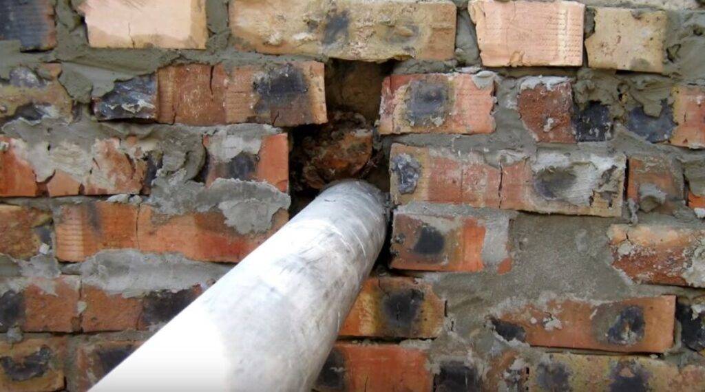 — Стены укрепляются при помощи кирпича или бутового камня.