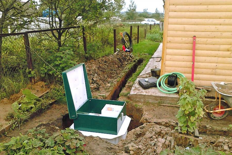 - установка резервуара – большинство септиков имеют полимерные корпуса, что значительно упрощает установку;