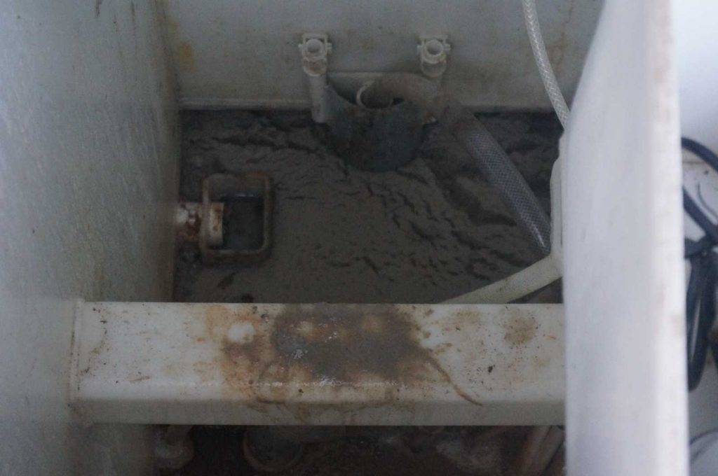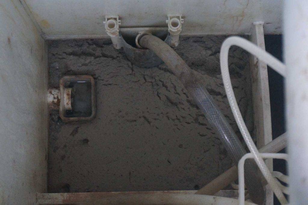 На фото мы видим большое скопление непонятной массы в камере аэротенка, а если вовремя не уследить то может появиться и во всех камерах. Эта масса и есть бактерии, только мертвые. По факту бактерии это ил, и когда они отмирают они становятся легче, всплывая создают вот такую шапку. Если вовремя не устранить проблему с отравлением бактерий, вся эта масса попадет в систему дренажа септика и забивает его. Хорошо если у вас дренажный колодец и его можно почистить, но часто бывают закладывают дренажную перфорированную трубу — в ней перфорация забивается очень быстро.