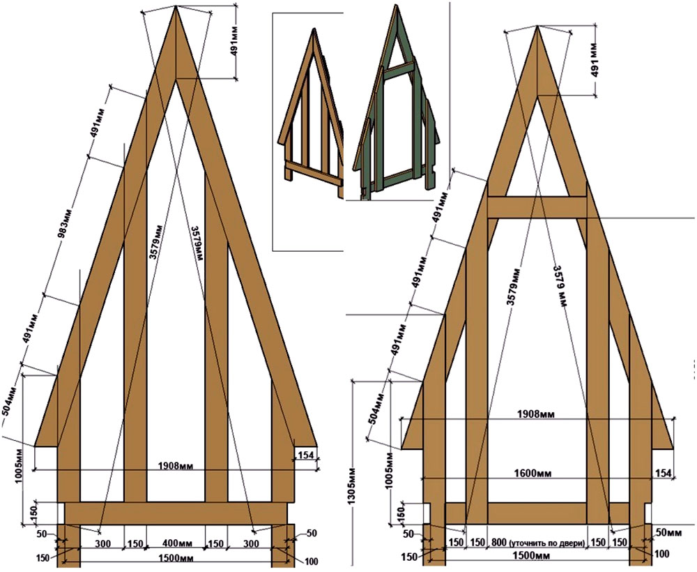 Если вы планируете построить отхожее место из древесины, её обязательно следует обработать защитной пропиткой. Брус сечением не менее 40×60 мм используют для каркаса, в качестве обшивки подойдёт любой материал. Мы подобрали несколько интересных чертежей с размерами, которые можно взять на вооружение.