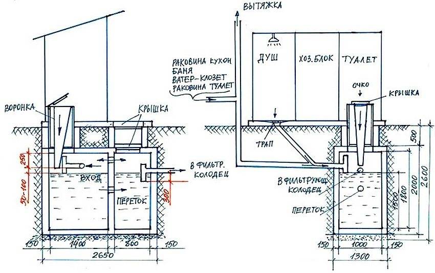 Схема двухкамерного септика с люфт-клозетом