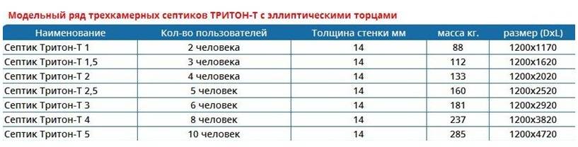 Выбор септиков Тритон Т по количеству проживающих