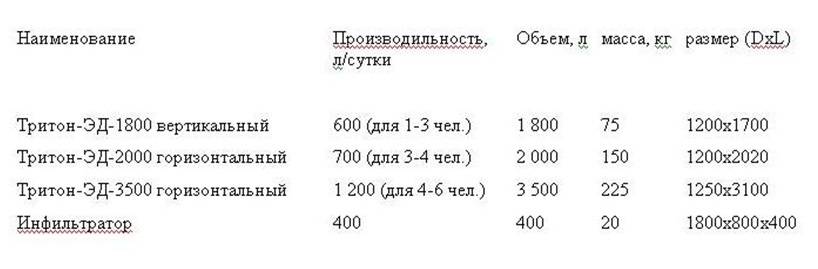 Выпускаемые модели септика Тритон ЭД