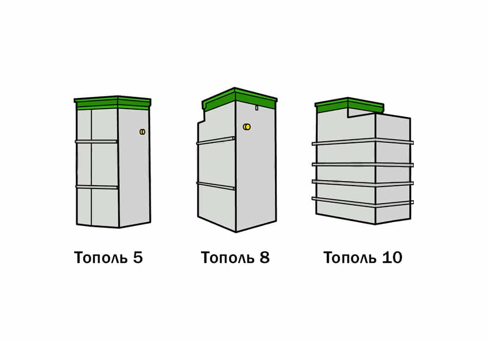 Модельный ряд септиков Тополь представлен устройствами различной производительности.