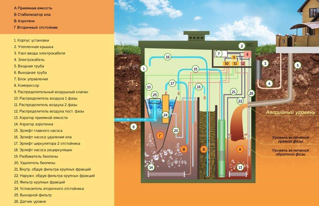 В отличие от других моделей очистных станций продукция компании Юбас не имеет камеры для стабилизации ила.