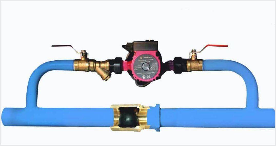 Установка циркуляционного насоса с байпасом и клапаном.