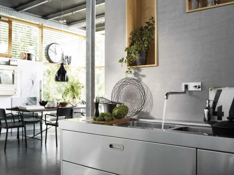 Для классических кухонь, а также гарнитуров в стиле прованс или ретро подойдут смесители в цвете бронза или медь с эффектом старения. Мебель в минималистском стиле, например техно или хай-тек, будет лучше смотреться с оригинальными и стильными кранами в хроме или нержавейке.