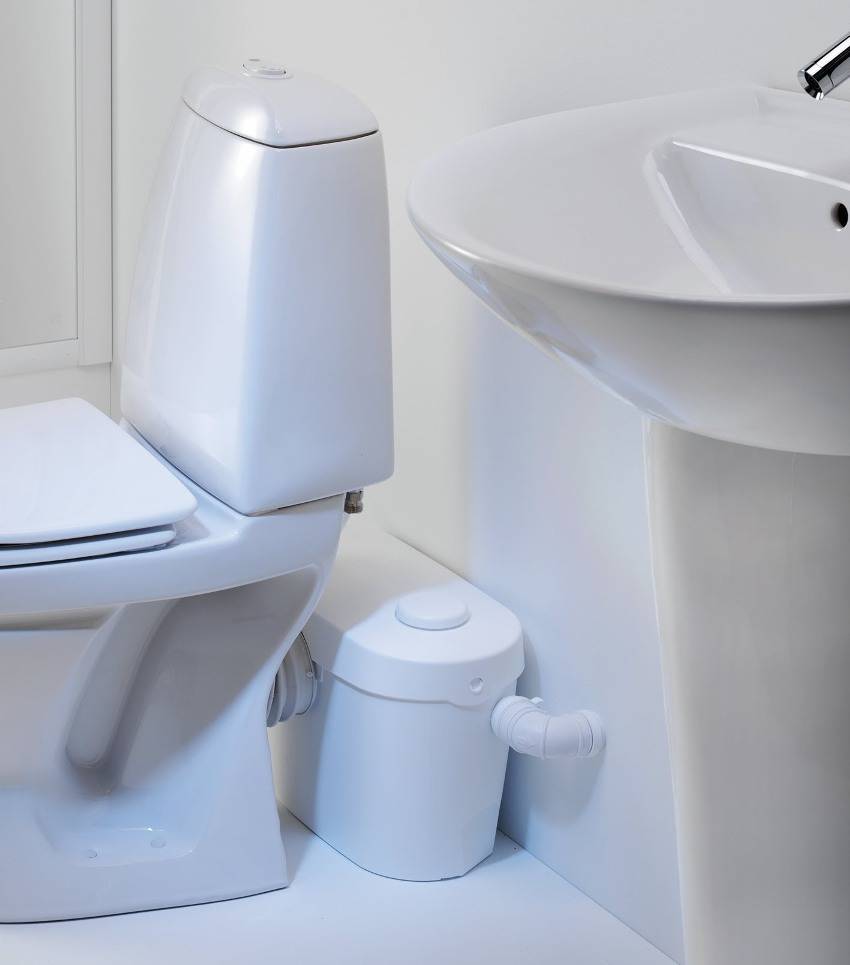 - на частный дом создана специальная автоматическая насосная установка Sololift WC-3. Кроме напольного унитаза, его можно подключить еще на 3 других оборудования. Цена — 30-40 тыс. руб;